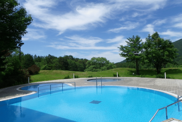 屋外プールは夏休み期間限定でオープンし、爽やかな高原の風を感じながら水遊びを満喫できます。