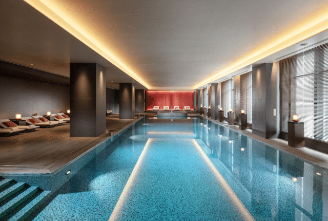 静かで落ち着いた雰囲気のある屋内プールでは、ラグジュアリーで優雅な時間を過ごせます。