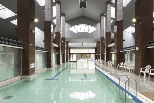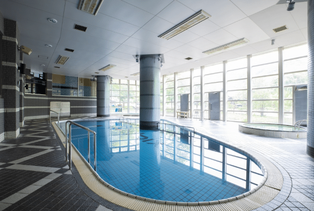 屋内には本格的な25mの温泉水のプールが完備され、天候に左右されずに水泳を楽しめます。
