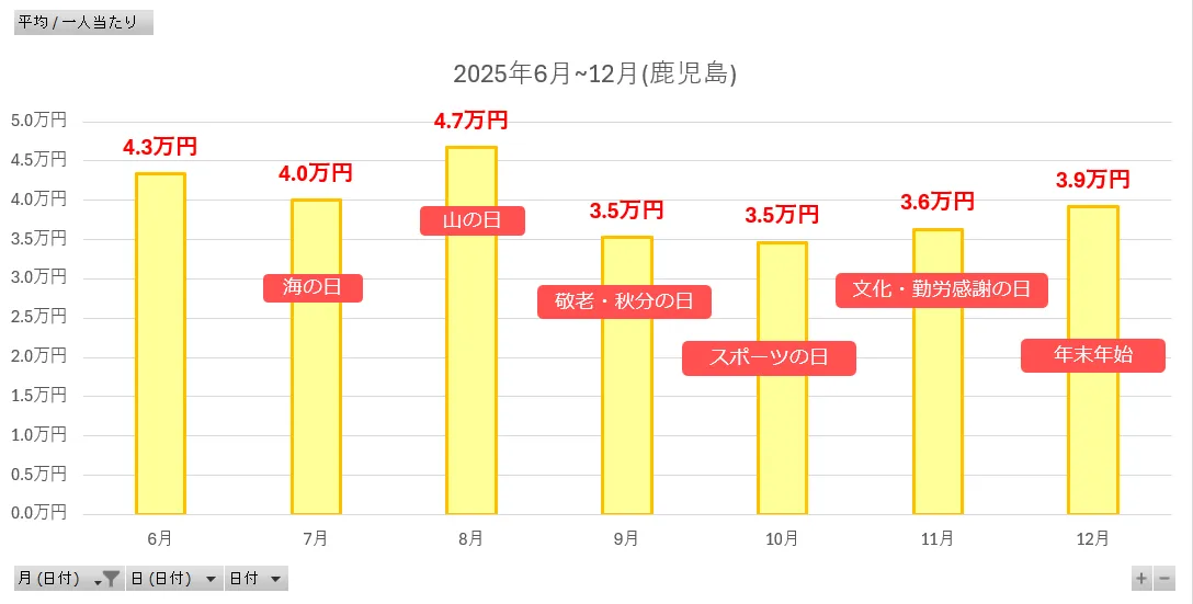 鹿児島旅行の費用の相場を比較【シーズン別の目安グラフ】