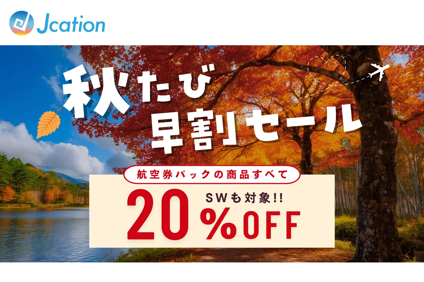 航空券パック商品なら旅行代金から20%割引(すべての航空会社が対象)