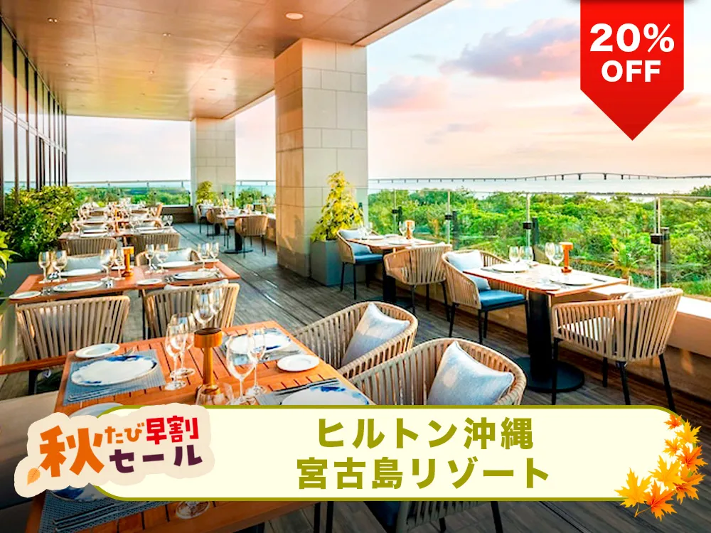【秋たび早割セール対象20%OFF】合計5つの屋内・屋外プールを完備!みやこサンセットビーチに隣接した、宮古ブルーの海やサンセットをを望むビーチリゾート!「ヒルトン沖縄宮古島リゾート」と航空券のリゾートパッケージプラン