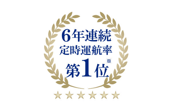 定時運航率第1位※(2017年~2022年)