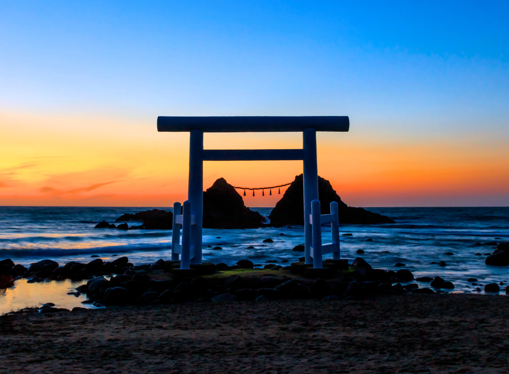 「桜井二見ヶ浦の夫婦岩」は、糸島市の桜井二見ヶ浦にある観光名所です。