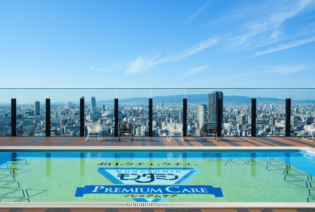 2024年に開業した西日本最大級規模を誇るアパホテル & リゾート〈大阪なんば駅前タワー〉には、40階屋上にモンダミンプールがあります。