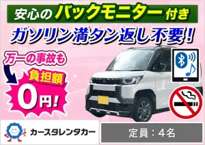 カースタレンタカーはガソリンスタンド併設店のため、全車両で「ガソリン満タン返し不要」が追加料金なしで利用できます。