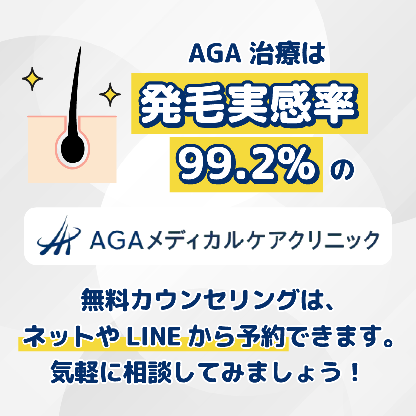 AGAメディカルケアクリニックは、99.2%の発毛実感率を誇る人気のクリニックです。