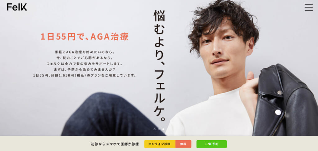 FelK(フェルケ)はオンライン診療に特化したAGA治療クリニックです。