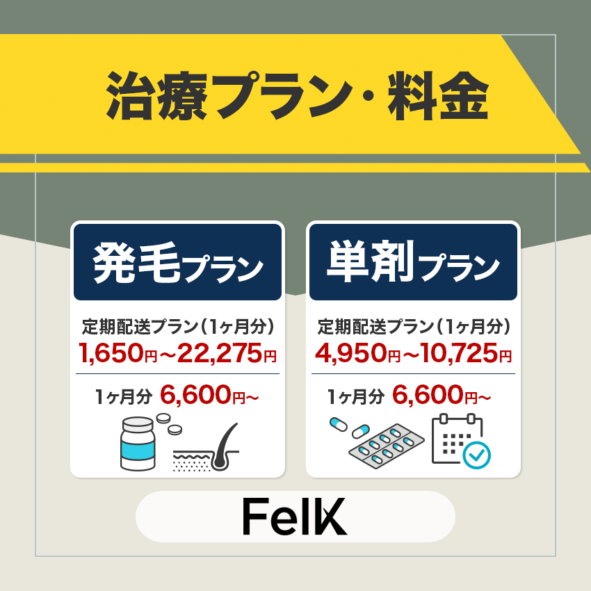 FelK(フェルケ)で用意されているAGA治療プランは以下の通りです。
