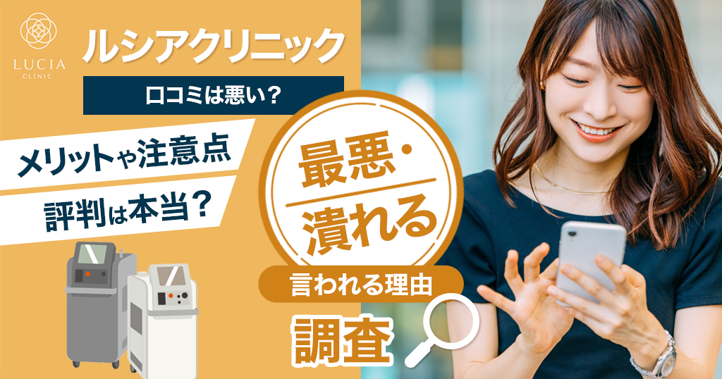 ルシアクリニックの悪い?最悪と言われる評判は本当? ルシアクリニックを利用するメリットや注意点が知りたい ルシアクリニックは、口コミで最悪・炎上・潰れる等の意見があり、利用するか決めかねている人も多いのではないでしょうか? 本記事では、ルシ... -