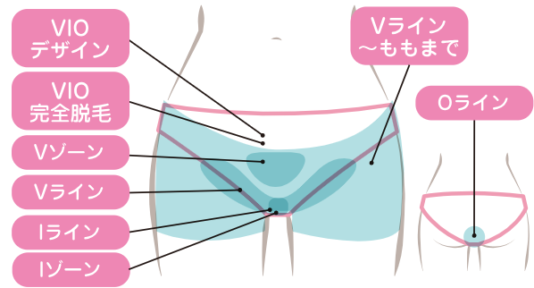 顔脱毛ではフェイスラインやアゴが範囲に含まれ、VIO脱毛ではVライン上部からIラインの粘膜部までしっかり照射できます。