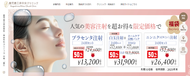 鹿児島三井中央クリニックブランクリニック鹿児島院品川スキンクリニック 鹿児島院セイコメディカルビューティクリニック鹿児島ラミュー美容形成外科クリニック野崎クリニックアリス形成外科クリニック荒田ひふ科クリニック猿渡ひふ科クリニック