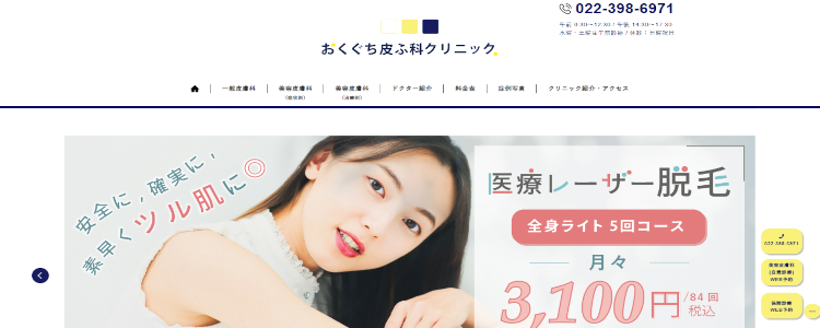 宮城は脱毛できるクリニックの数が多く、土日も営業している割合が高いため、週末の通院だけでも脱毛にチャレンジできます。
