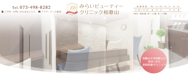 | クリニック | ![]() ![]() TCB東京中央美容外科 和歌山院 | ![]() ![]() 湘南美容クリニック 和歌山院 | ブランクリニック 和歌山院 | みらいビューティークリニック和歌山 | 医療法人清和会和歌山 |