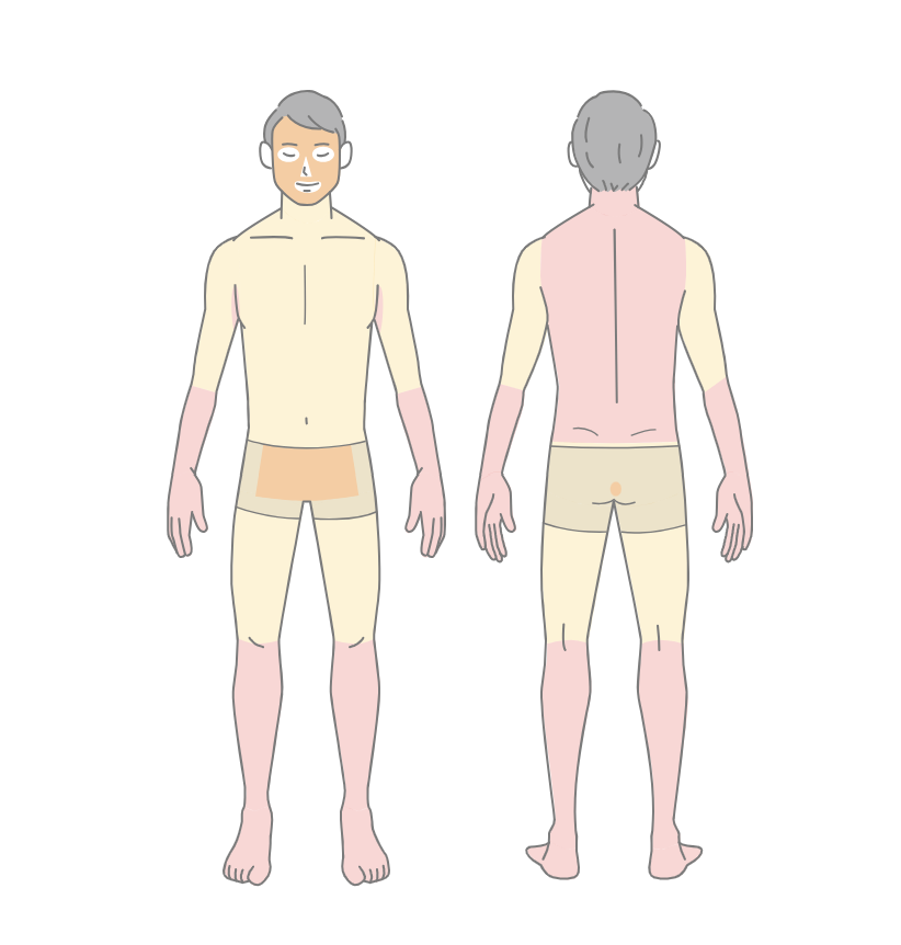 一般的な部位としては、ヒゲ脱毛、胸毛や腹毛脱毛、脚や腕の脱毛などが人気です。