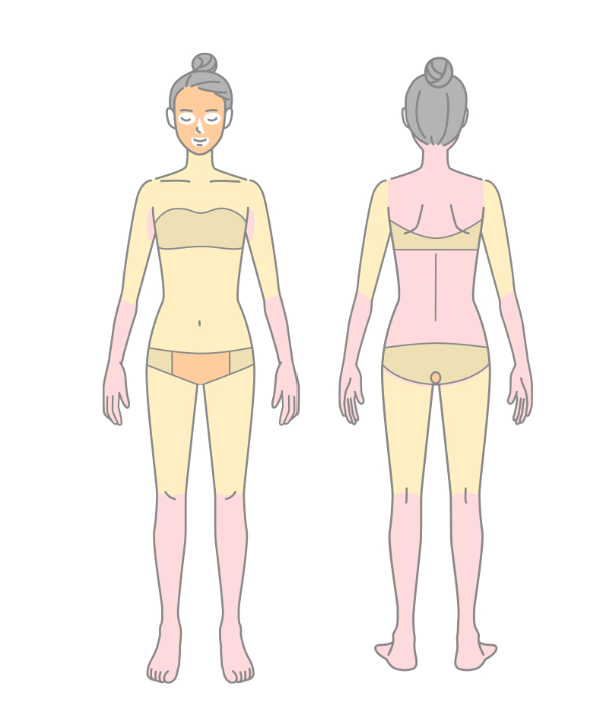 | 背中・肘下・ ひざ下・脇 | デコルテ・お腹・ 二の腕・太もも | オプション1部位 (顔orVIO) | |||