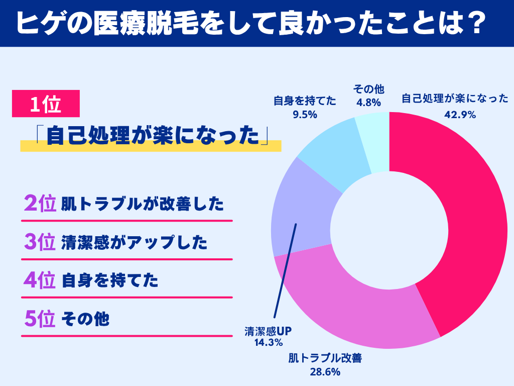 まずは以下の「ヒゲの医療脱毛をして良かったことは?」のアンケート結果をご覧ください。