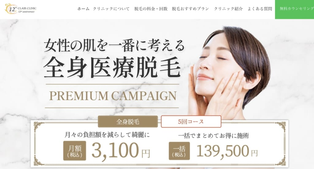 最短5ヶ月での脱毛を目指しているため、できるだけ短期間で脱毛効果を感じたい方におすすめのクリニックと言えるでしょう。