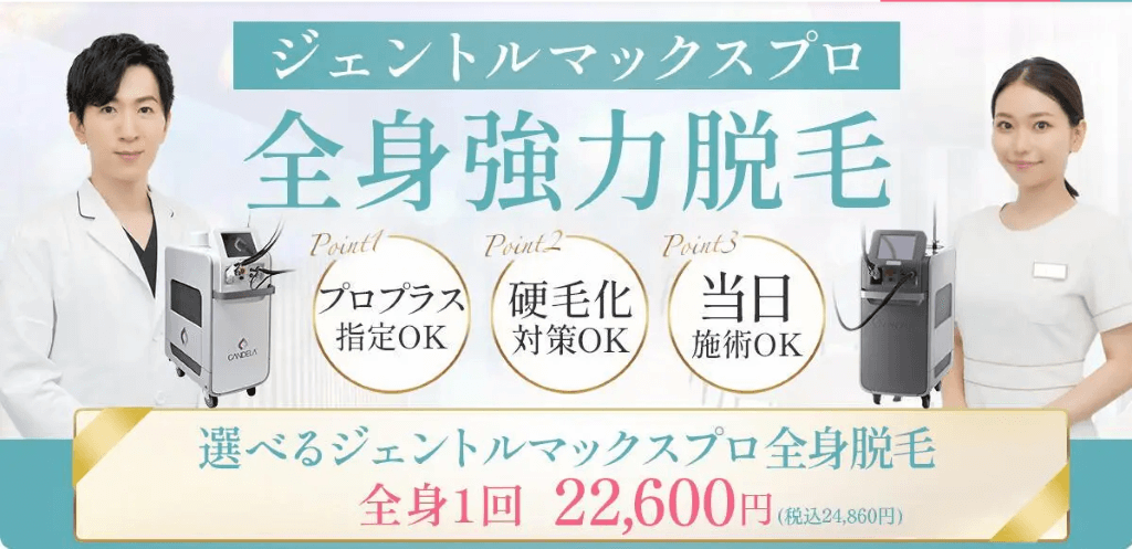 施術では、アレキサンドライトレーザーやダイオードレーザーなど、複数種類の最新医療脱毛機を導入しており、肌質や毛質に合わせて最適な脱毛機を選択できます。