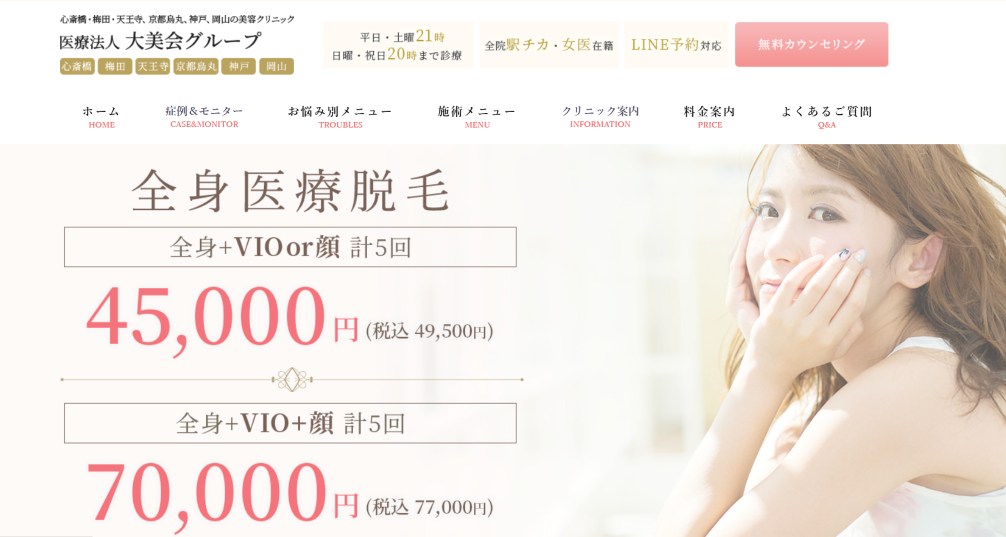 大阪美容クリニックは、関西を中心に7店舗のクリニックを構える美容クリニックです。