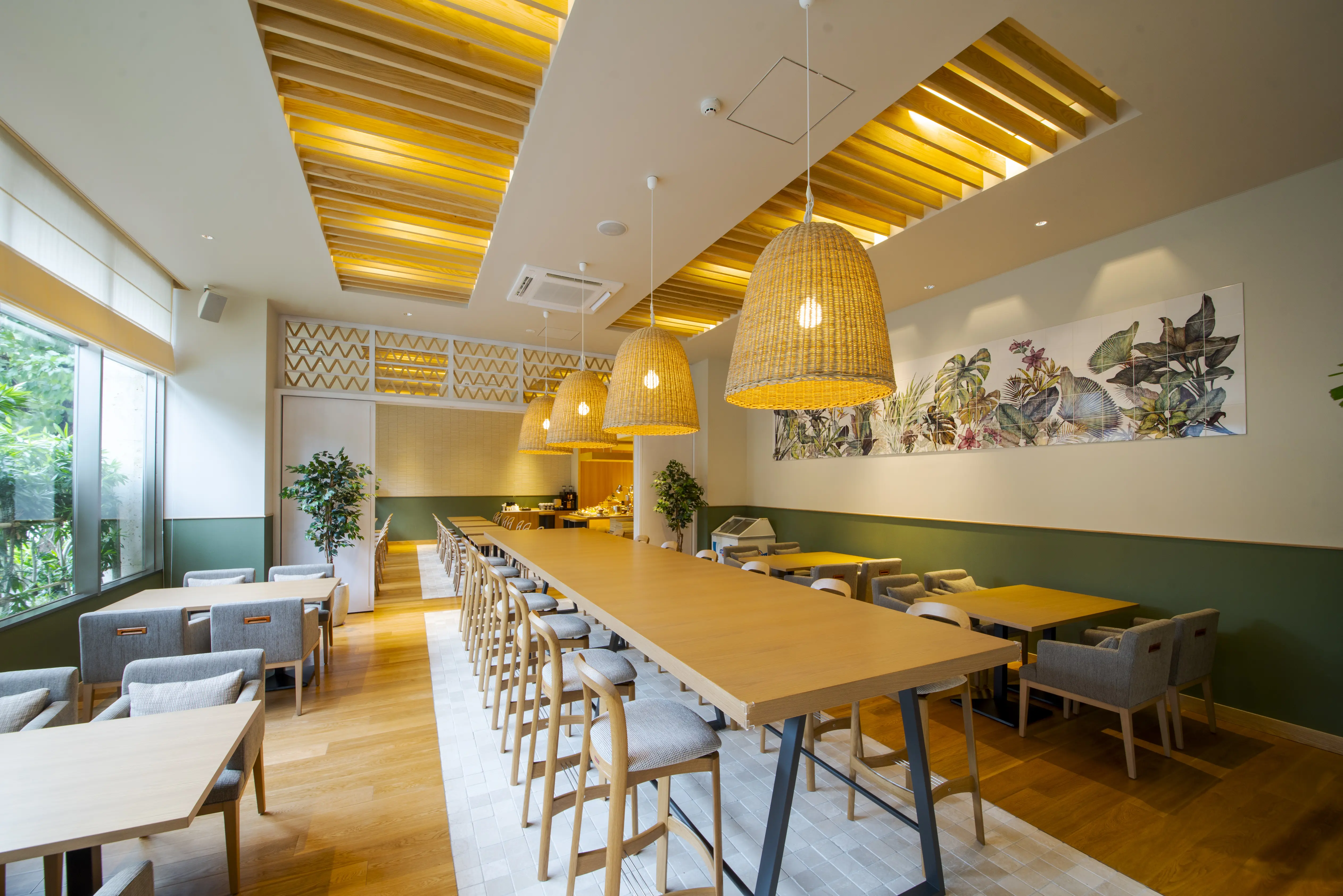 大きな窓から陽光が差し込む空間で、沖縄の恵みが詰まったビュッフェと焼きたてパンが五感を刺激します。心と身体が喜ぶ朝カフェごはんで、素敵な一日を始めませんか?