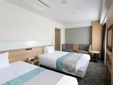 デラックスツイン25㎡の広々としたお部屋にダブルベッドを2台設置。最大4名様までご利用頂けます。