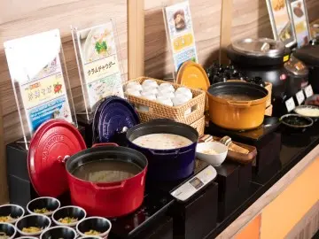 スープコーナー季節ごとに変わるホテル自慢のスープもご用意しております。あったかスープで忙しい朝にほっと一息。