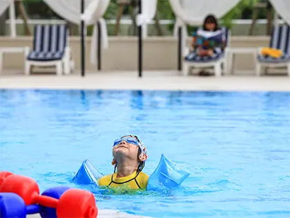 - 開放的なガーデンプールで沖縄のリゾートステイを満喫。水深の浅いキッズプールもあります。泳ぎ疲れたらプールサイド併設のジャグジーや季節営業のプールサイドカフェでお寛ぎください。