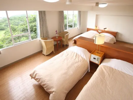아침뷰 이외에는 침구 청결도 숙소가(맵코드가 없음) 오키나와에서 관리가 않되는 호텔임을 증명. 건물이 상당히 낡았음. 온천은 파3골프장 클럽하우스에 돈내고 사용.
