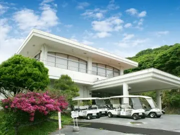 丘に建つ海を望めるゴルフ場のホテル