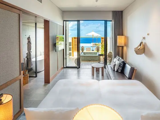 広々としたテラスやバスルーム、デイベッドで寛ぎながらオーシャンビューをお楽しみいただけます。
