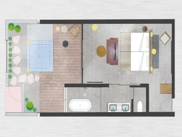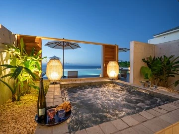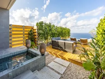 広々としたテラスやバスルーム、デイベッドで寛ぎながらオーシャンビューをお楽しみいただけます。