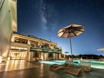 テラスにジャグジーを完備。専用の広い庭に並ぶソファで、夜は古宇利島の星空もご堪能いただけます。