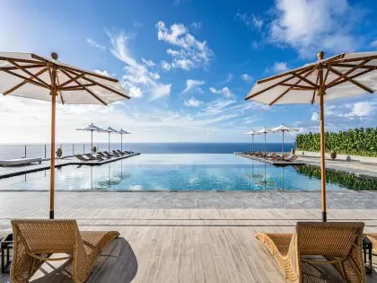 古宇利大橋から車で約6分。沖縄本島北部の車で渡れる離島、古宇利島のホテルです。客室は全室オーシャンビュー。視界を遮るものがない高台から東シナ海が一望できる抜群のロケーションです。