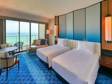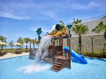 プールにビーチにキッズルーム。4歳の息子はあと100日泊まりたい!と言うくらい気に入っていました。お部屋も広くて清潔。アメニティも充実しています。今回はラウンジ付きのプランは売り切れで普通のプランでしたが次回はラウンジも行ってみたいです。子連れにオススメと書きましたが、VIPプールバーやバー等大人だけのスペースもあって棲み分けがちゃんとできる感じです。プールが終わるのが6時と早いので、20時頃までナイトプールがやっていたらいいなと思いました。フロントの方を始め、スタッフは皆様親切でしたし、イタリアンのスタッフはお料理の説明が丁寧でホスピタリティを感じました。お蕎麦屋さんも美味しかったです。また行きます。