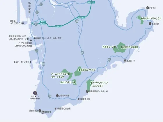 琉球ホテル&リゾート 名城ビーチ までのアクセスは、那覇空港から車で約20分で到着します。