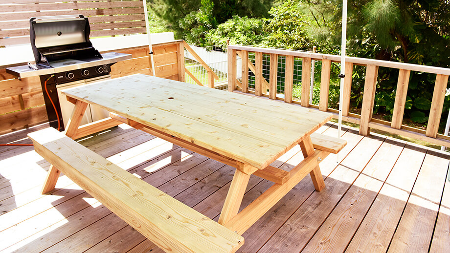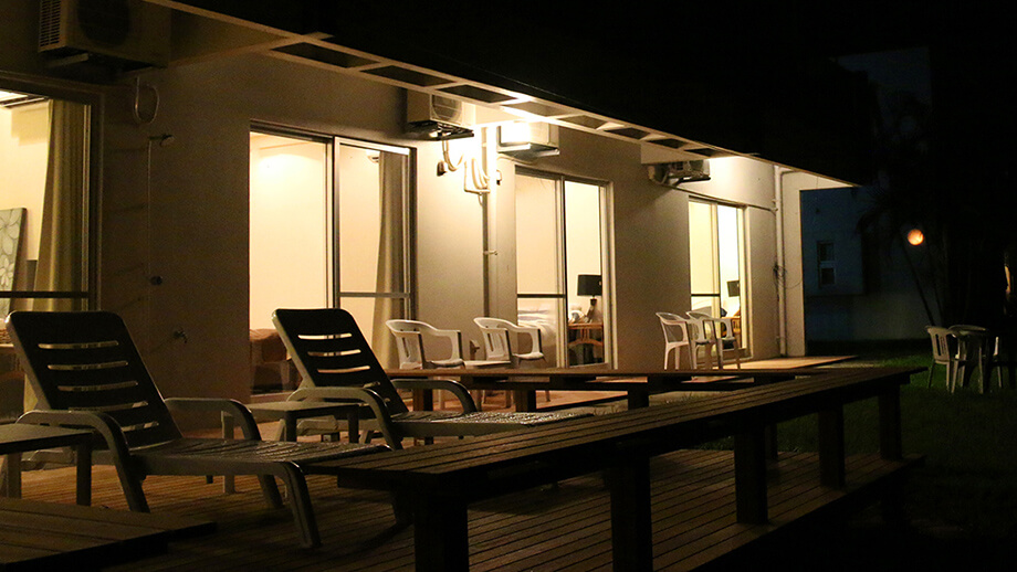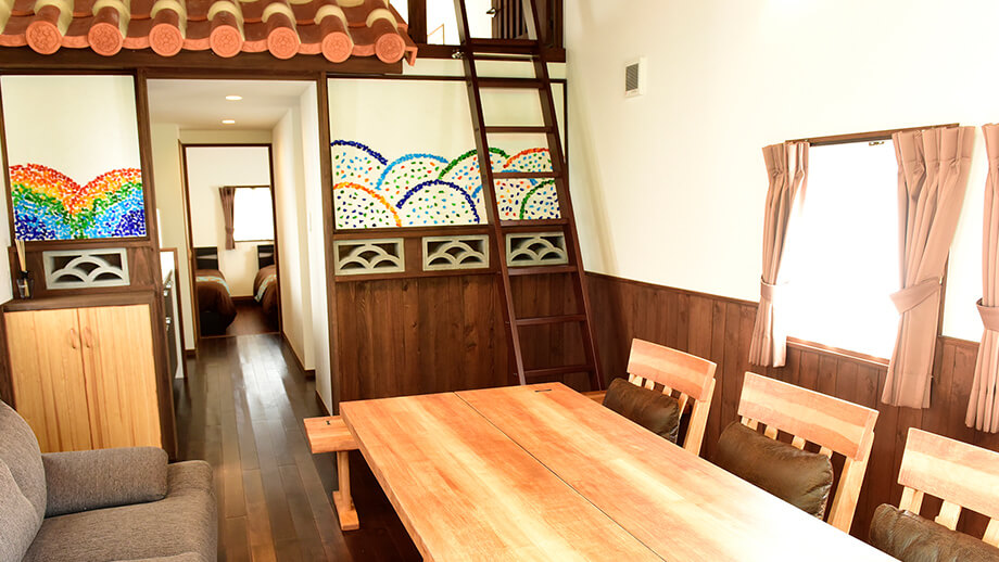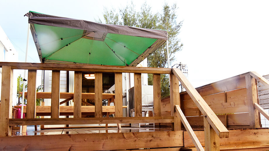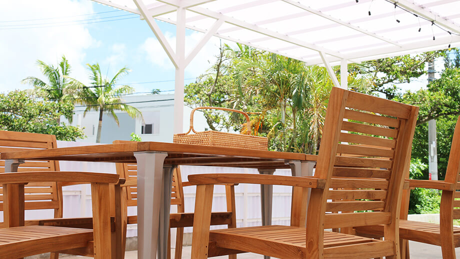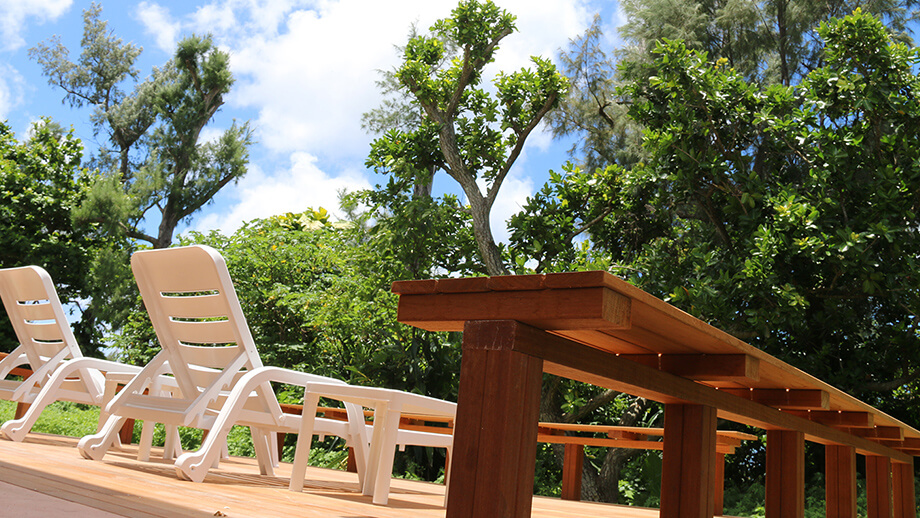 ウッドデッキで一休みしたり、食事を楽しんだりと、まるで沖縄で暮すようなステイができます。