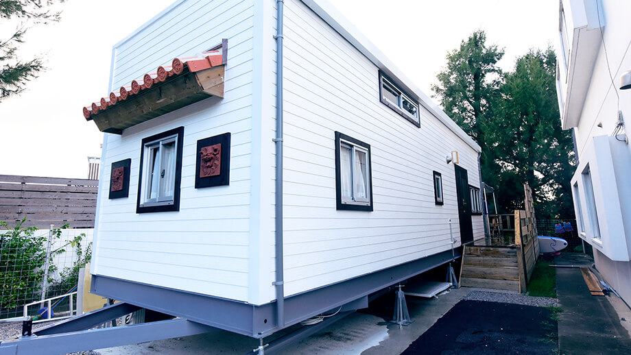 トレーラーハウスは、車輪がついていて移動が可能な小さな家。名前のとおり、トレーラー(車輪がついた構造)+ハウス(家)で、通常の家よりもコンパクトで、カジュアルに住むための工夫が満載です。小さいスペースを有効活用するための「トランスフォーム家具」も充実。このような多機能性が、トレーラーハウスの大きな魅力。一度は違った雰囲気のお部屋で沖縄ライフを満喫しましょう。