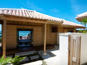 客室数は全 18 室。インターネットは無料 WiFi、有線インターネットが利用可能です。全室オーシャンフロントの客室から久高島や奥武島の景観が楽しめます。施設はエステルームがあります。