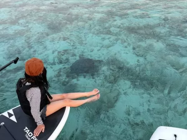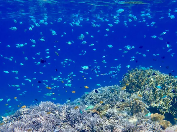ポイントまで移動した後は、スノーケルを楽しむことができます。カラフルな熱帯魚や光に揺れるサンゴが広がる幻想的な世界が待っています。