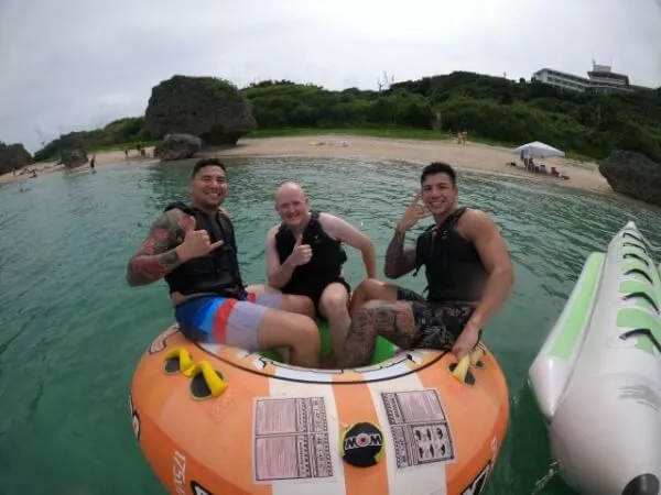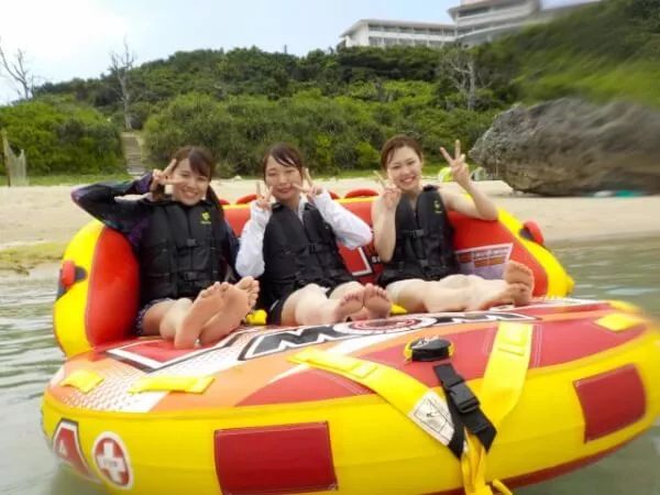バナナボート スーパーブッパ ウェイクボード フライボード ホバーボード SUP カヤック ビックボーイ ハリケーンチューブ ジェットマリン 無人島クルーズ バナナボートで浜嘉比島一周コース