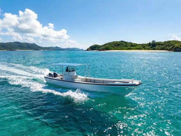 恩納村の港からボートに乗船し、約5分のクルージングしながら青の洞窟へ到着します。