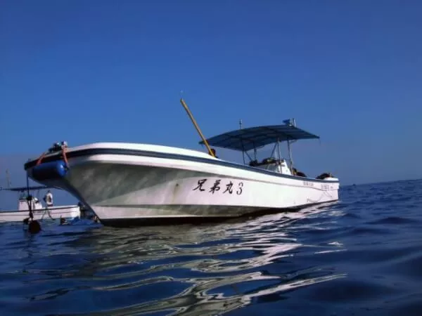 ボートの上で器材を着用したら ゆっくり海に入ります。 インストラクターが大きなフロートを持っていますので泳げない方でも安心です。