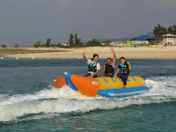 ジェットスキー遊覧、バナナボート、スーパーマーブルの3種類から2つお選びいただけます。