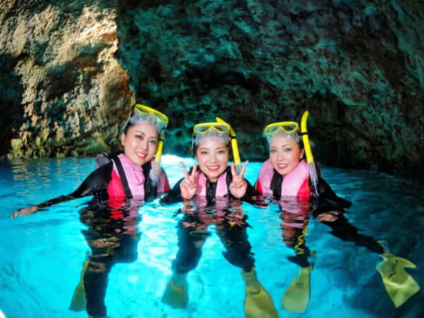 沖縄県恩納村にある青が輝く青の洞窟ツアー