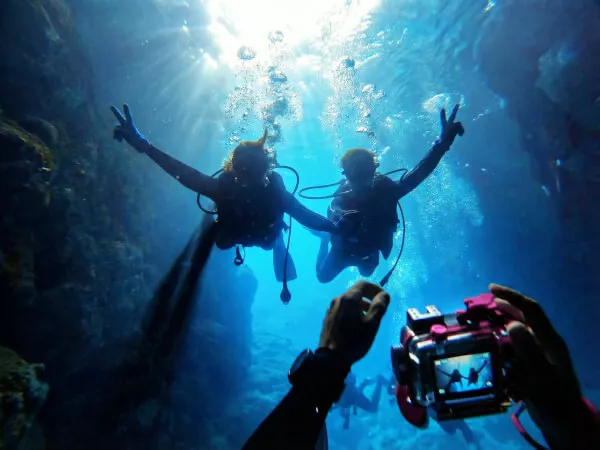 いよいよ体験ダイビングスタートです。 インストラクターが付きっきりでご案内しますのでご安心ください。慣れてきて周りを見るとびっくりするほどの青さが広がっています。また色鮮やかな魚たちが皆さまを出迎えてくれます。
