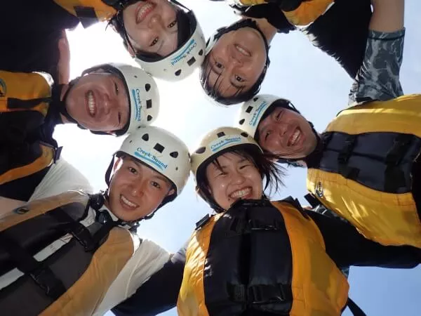 1艇に必ずガイドが乗船し、そのガイドと共にみんなチーム一丸となって愉快に爽快に川を下っていきましょう!