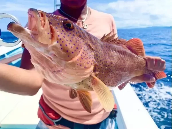 20分~30分ほどの魚がいるポイントに移動! 船が大きいので快適空間♪