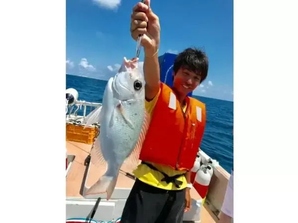 15分ほどの魚がいるポイントに移動! 船が大きいので快適空間♪
