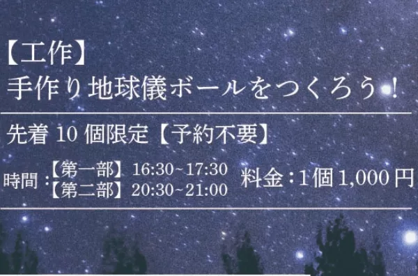 工作ブースでは、自分だけの「天体ボール」作りも体験できます。春の夜、家族みんなで宇宙のロマンに触れるひとときをお過ごしください。